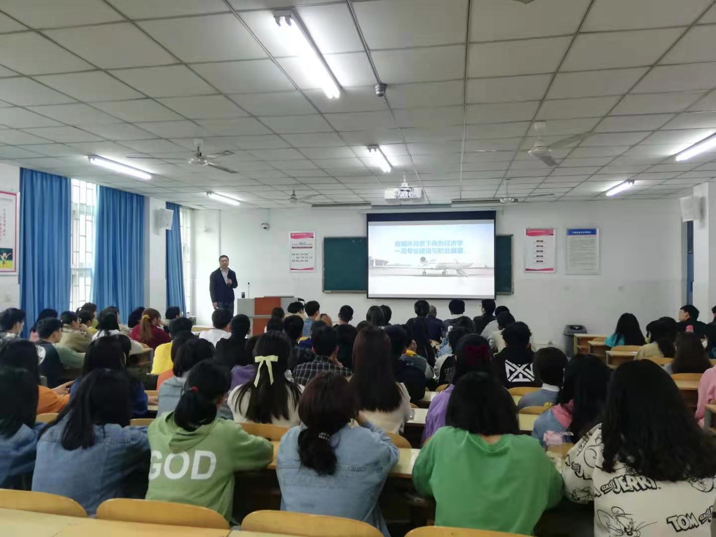 2021年4月8日下午,tyc522cc太阳成集团特邀郑州航空工业管理学院经济学院院长、博士后郝爱民教授在英才校区W106教室作“双循环格局下商务经济学专业建设思路与职业期望”的专题讲座,讲座由商务经济学教研室主任郑泽华老师主持,我院商务经济学专业全体师生参加了讲座。