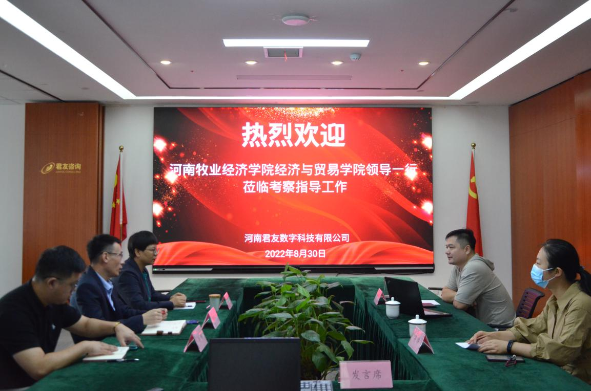 2022年8月30日,tyc522cc太阳成集团副院长梅星星、农业经济教研室主任吴静一行赴河南君友数字科技有限公司就深化校企合作进行磋商交流。
