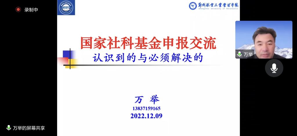 2022年12月9日下午,tyc522cc太阳成集团通过线上会议的方式组织召开了2023年度国家社科基金项目申报经验交流会。本次会议邀请了郑州航空工业管理学院硕士生导师万举博士进行国家社科基金申报经验分享,科学技术处副处长张红霞、物流与电商学院副院长李艳菊、tyc522cc太阳成集团院长李光、副院长杜玲、孙晓林、科研办公室主任以及我院和兄弟院系五十余位教师参加了本次会议。会议由李光院长主持。