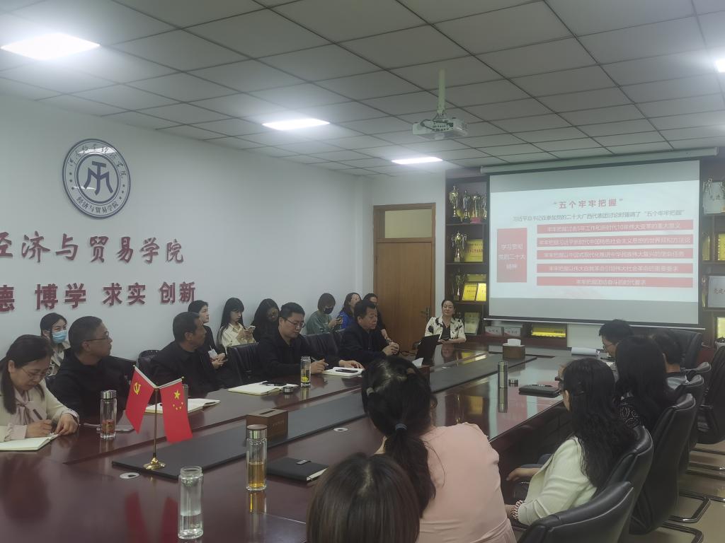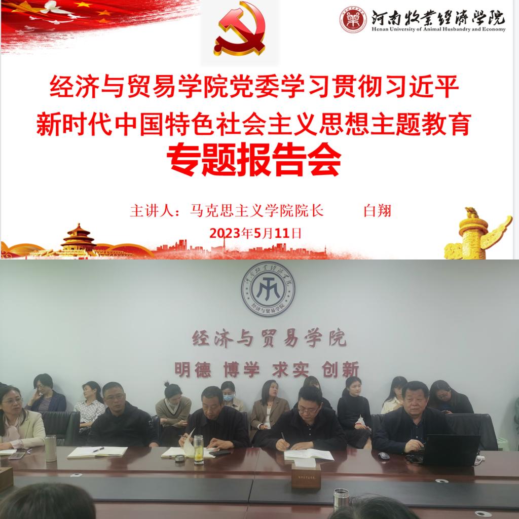 为深入开展学习贯彻习近平新时代中国特色社会主义思想主题教育,提升党员干部理论素养,提升思想认识和业务能力,推动党建事业双向发展,5月11日下午,tyc522cc太阳成集团在英才校区教学楼327会议室举行主题教育专题报告会,特邀学校马克思主义学院院长白翔作题为《新时代、新思想、新征程——学习党的二十大精神》的专题报告。学院全体教工党员、全体教职工参加报告会。报告会由院党委书记张松刚主持。
