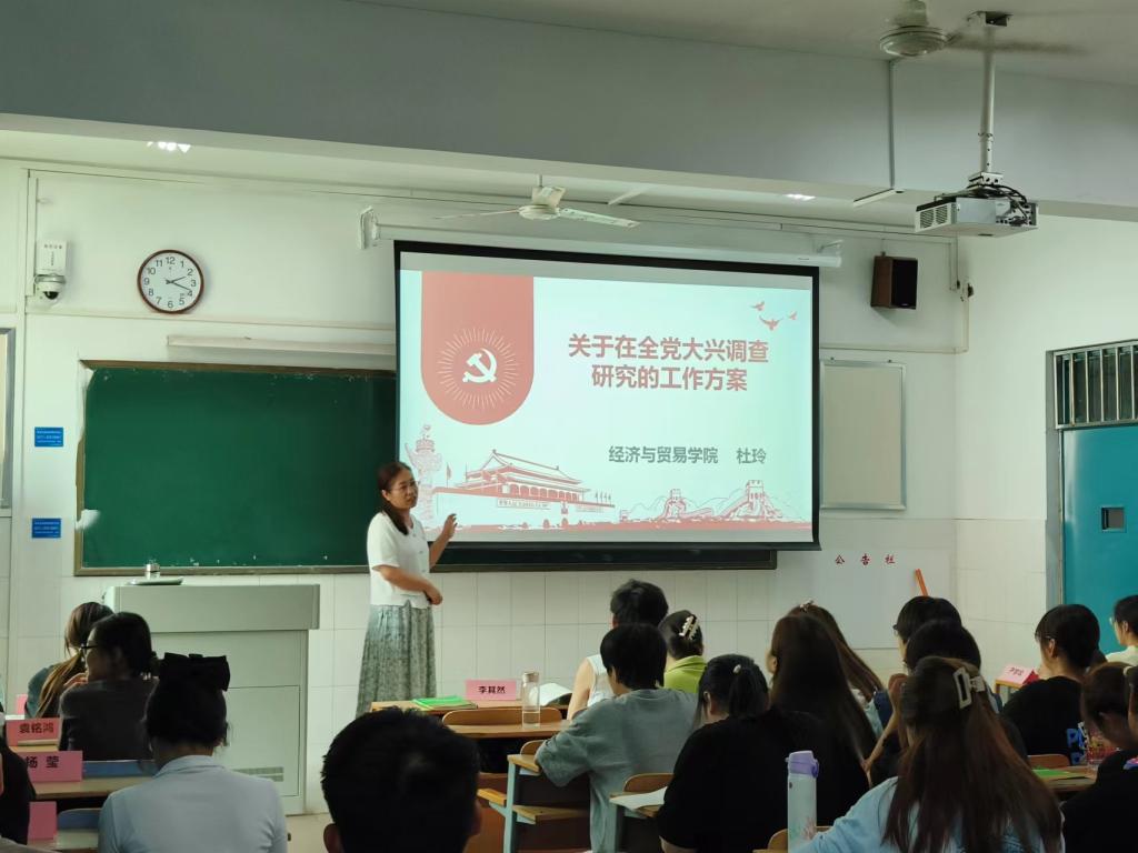 根据校党委印发的《关于在全校党员中深入开展学习贯彻习近平新时代中国特色社会主义思想主题教育的实施方案》和tyc522cc太阳成集团党委《关于深入开展学习贯彻习近平新时代中国特色社会主义思想主题教育的实施方案》要求,5月16日中午,我院党委班子成员、副院长杜玲结合农林经济管理学生专业特点,为我院农林经济管理专业21级全体学生上主题教育专题党课,重点解读了《关于在全党大兴调查研究的工作方案》。